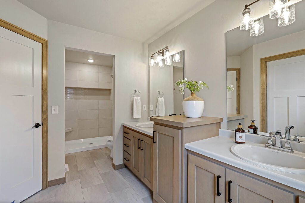 Last but surely not least, the master bedroom and bathroom. This room includes lots of space, high ceilings, and a large window with a beautiful view of the backyard. Furthermore, we walk into the master bathroom featuring dual sinks with lots of cabinet storage, a large walk-in closet, and an enchanting tile shower, consider this your area to get away!