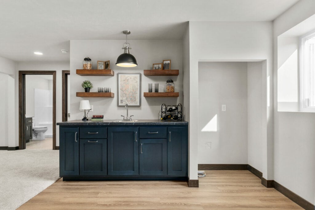 This home also features a finished basement with a bathroom, a wet bar, and a bedroom.