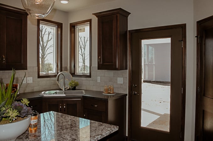 Moving into the kitchen, you will see multiple cabinets for storage, as well as a pantry. Not only that, but a gorgeous island to accommodate the preparation of meals and storage.
