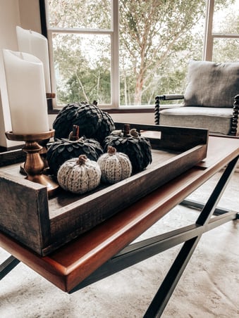 The perfect setting for a cozy fall night always includes candles! Any kind of candle that allows that flickering of soft light will definitely create more coziness! Adding plain white candles is simple and will last you through to late fall combined with your neutral color palette. They also go great with other small decorations to make a center piece for your coffee table or dining table.