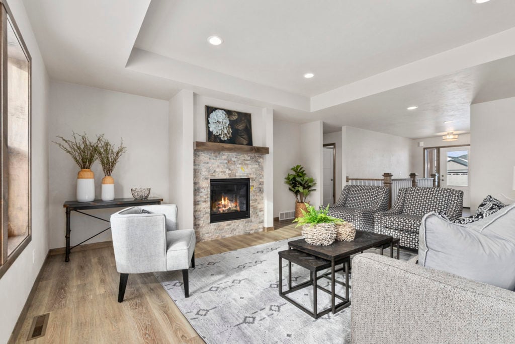 When entering the home’s foyer, you will be welcomed by a gorgeous open space featuring your living room. This space flows nicely into the kitchen and dining area, making it a cohesive space for entertaining!