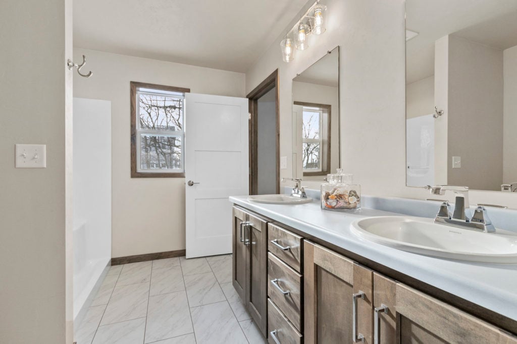 Next, we have the master bedroom. This room features excellent space, natural lighting through large windows, and optimal storage with the walk-in closet. The Master suite also offers a double sink bathroom with a standing shower.