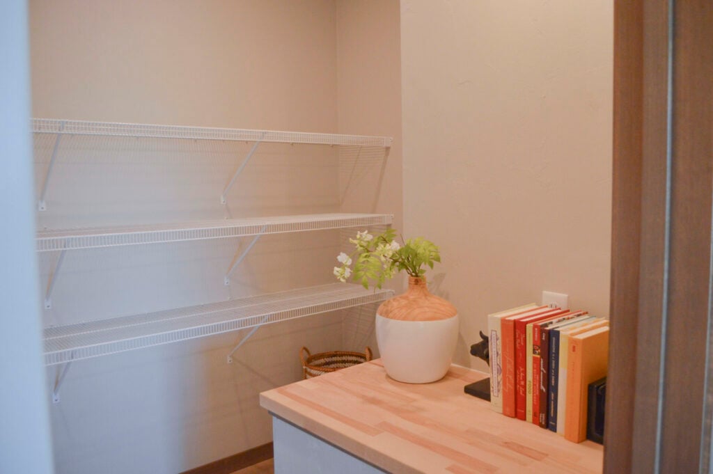 This home features a large walk-in pantry with a coffee bar! A great space right in your pantry for all of your coffee needs. This designated area is large enough to fit those needs, but also keep everything out for when you are working in the kitchen!
