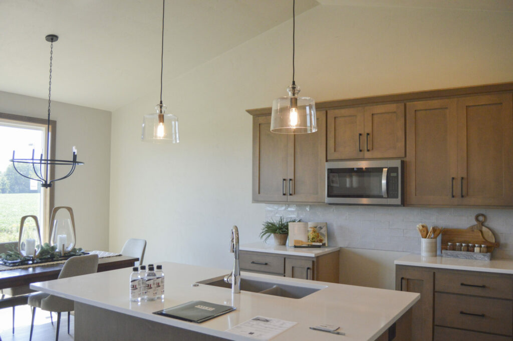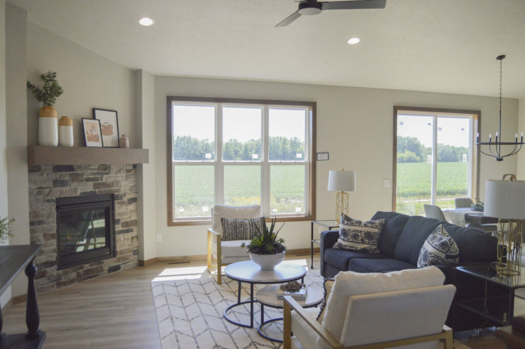 Walking into the living room you will see a beautiful stone fireplace to keep you warm. Easy access to the front and back doors as was as the kitchen. This living room is very open-concept style while staying separate from the bedrooms. This room is one of the many highlights of this floor plan, a great space to relax!