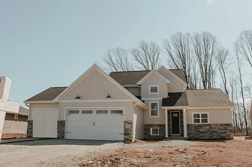 This floor plan features an open concept 1.5 story home. Offering 4 beds, 2.5 baths, and 3 car garage.